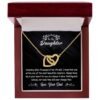 Your piece is lovingly packaged in a complimentary soft touch box for easy gifting. Elevate your presentation by upgrading to the mahogany style luxury box, which features a brilliant LED spotlight.