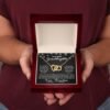Your piece is lovingly packaged in a complimentary soft touch box for easy gifting. Elevate your presentation by upgrading to the mahogany style luxury box, which features a brilliant LED spotlight.