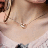 Give her the gift that symbolizes your never-ending love. Featuring two lovely hearts embellished with cubic zirconia crystals, this Interlocking Hearts necklace is the perfect accessory for everyday wear. Whether it’s a memorable anniversary or a special birthday, make sure to dazzle your special someone by gifting them this stunning necklace.