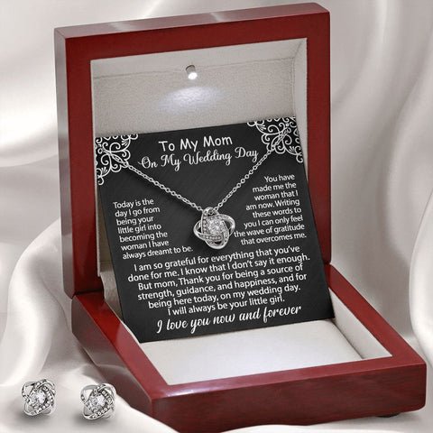 The Best Wedding Gift Idea: To My Mom Jewelry Gift Set On My Wedding Day From Bride, Love Knot Necklace And Earrings Gift For Mom, Mother Of The Bride Jewelry Gift Idea, is the perfect gift to delight your beloved mother on your big day.